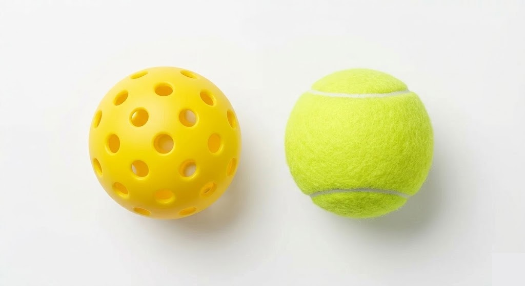 This is where the sports diverge most obviously in feel. Pickleball uses a hollow plastic ball with holes drilled through it, which produces a low, somewhat unpredictable bounce and a distinctive clicking sound that pickleball courts are famous for generating at 7am in residential neighborhoods.