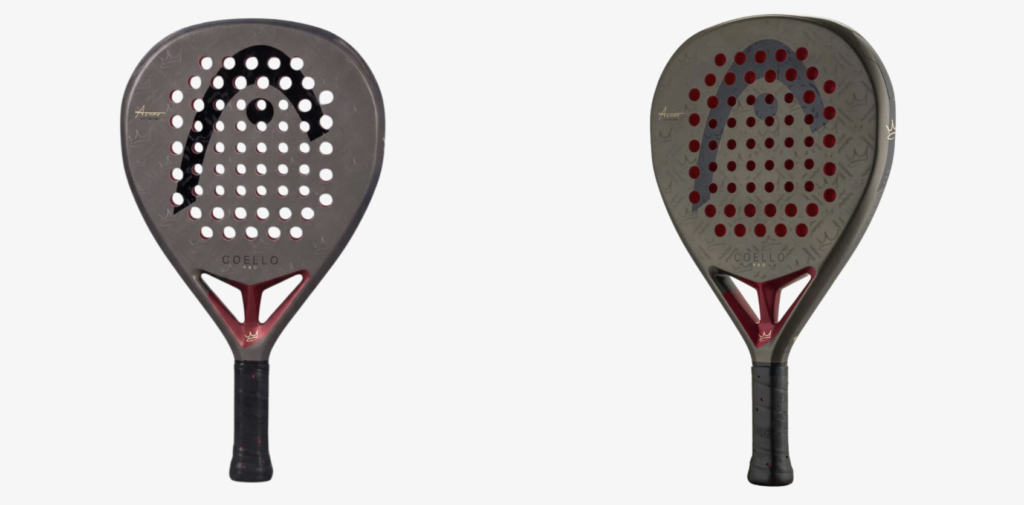 Arturo Coello uses the Head Coello Pro 2026, his signature racket. It is a diamond-shaped, head-heavy attacking racket built around maximum power, featuring Carbon Hybrid faces, Red Power Foam core, Auxetic 2.0 technology, and Extreme Spin 3D texture. The Head Coello Motion 2026 is the more accessible version of the same design.